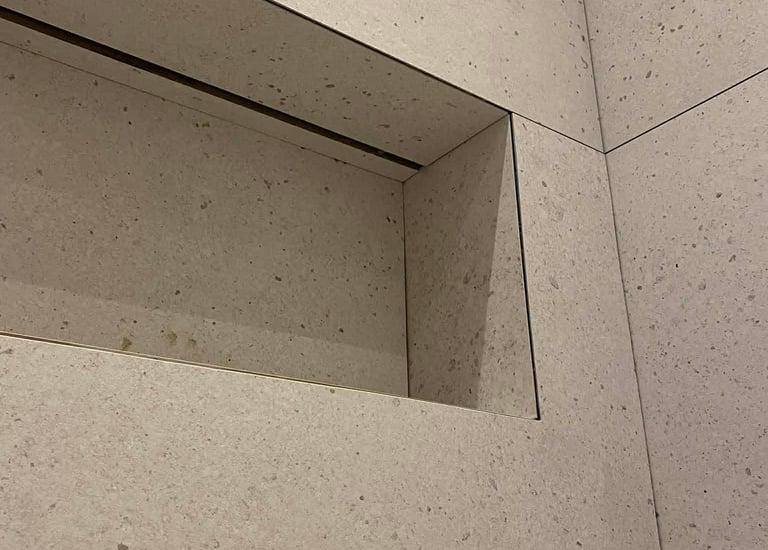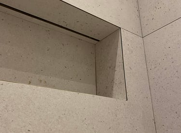 Profesionaliai klijuojame visų formatų plyteles nuo 3 cm iki 3 metrų. Atliekame 45° kampų suvedimus, epoksidinį glaistymą ir užtikriname aukščiausią tikslumą.